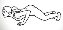 Med IZDIHOM spustite kolena in obraz do tal, trebuh in medenica pa ostaneta rahlo privzdignjena.